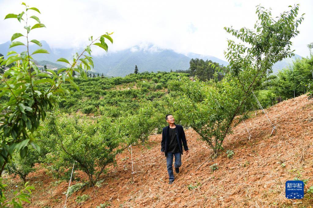 5月19日,重慶市巫山縣曲尺鄉(xiāng)權發(fā)村村民在查看脆李生長情況。新華社記者 王全超 攝