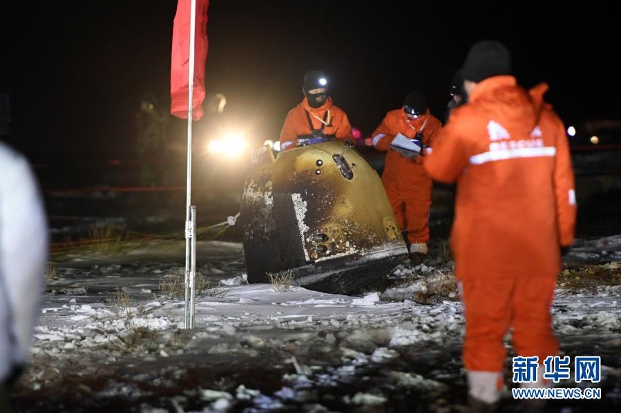 12月17日凌晨,嫦娥五號(hào)返回器攜帶月球樣品,采用半彈道跳躍方式再入返回,在內(nèi)蒙古四子王旗預(yù)定區(qū)域安全著陸。新華社記者 任軍川 連振 彭源 攝