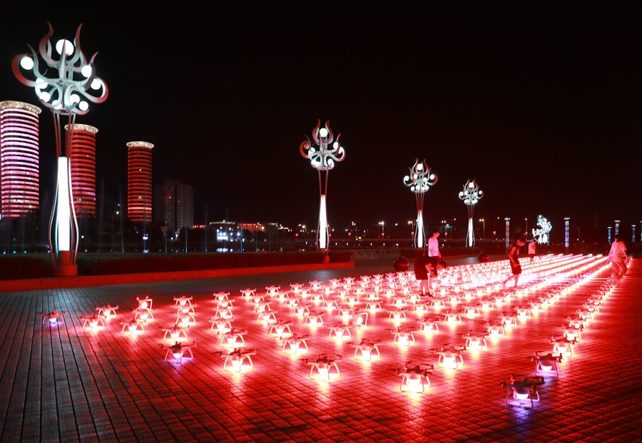 超震撼!500架無人機(jī)扮靚青城夜空